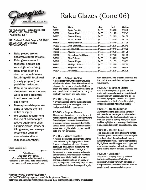 Georgies Raku Glazes (Cone 06)