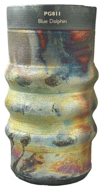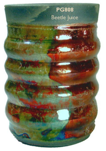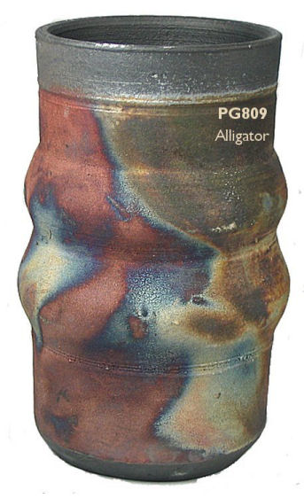 Our unique raku glazes are ready to use. Brush, dip, pour or overlap for dramatic effects -- and remember you can use the black color of the smoked clay body as a design element in your work. The photos shown here are based on our test firings. Color variations will occur with your glaze application, firing, and type and density of combustible materials used in reduction. Just for fun, try using Duncan's French Dimensions or Mayco's Designer Liners (both are raised glazes), to draw designs on raku glazes before firing -- or on the bare clay! Please note: raku glazes must be fired in a propane or natural gas fueled kiln, creating at least a partial reduction atmosphere during firing, and followed immediately after firing by a separate reduction process. Firing these glazes in an electric kiln WILL NOT create the iridescent and metallic lusters and flashes for which raku is known. Raku is an inherently dangerous process as you work in close proximity to extreme heat and open flame. DO NOT ATTEMPT RAKU FIRING without proper personal safety equipment and thorough training in the technique from an artist or crafter experienced in the process.