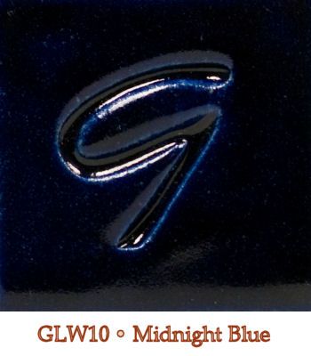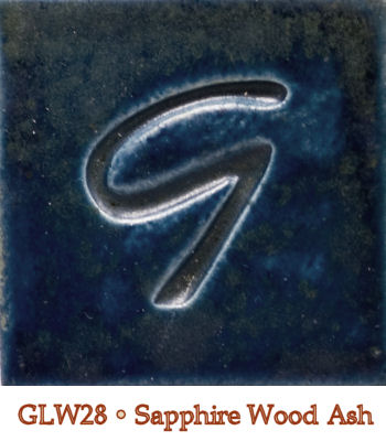 Satin-to-gloss and semi-opaque. Rich cobalt blue where thin to smoky dark blue/black where thicker. True ash glaze: test your application for runs. Food safe.