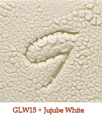 Fabulous breaking, crawling, glossy white beads. Apply with a sponge and the bead pattern shows up almost immediately. Heavier application creates larger beads. Can be applied over other glazes. Glossy glazes will smooth out the beads while matte or dry glazes keep the beads stiff. For pure contrast, apply an underglaze to clay surface followed by Jujube. Food safety depends on your underlying or contrasting glaze.