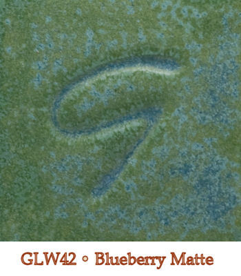 Satin-matte and opaque. Soft, mottling, satin-matte that brings the look of a ripening blueberry: green where thin and turning medium blue as it gets thicker. Food-safe.