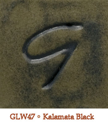 Opaque and matte. When thin it produces an olive khaki color. Applied thicker it mottles to black, achieving a rich breaking black at it's thickest. Food-safe. Gallons are special order only.