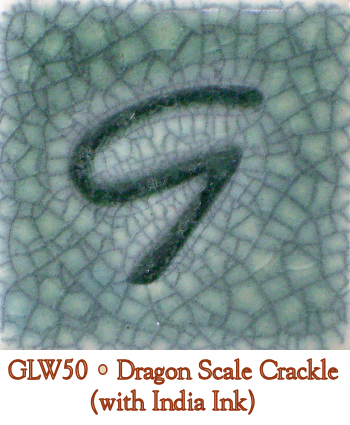 India ink will highlight the crackle patterns in the fired glaze. India ink, however, SHOULD ONLY BE USED WHEN THE CLAY BENEATH THE GLAZE IS VITREOUS (fused and waterproof as a result of firing). If the clay is not vitreous, the India ink will soak into the clay body and spread, with less-than-desirable results. If the ink soaks in, there is no cure other than refiring the piece to burn out the ink.