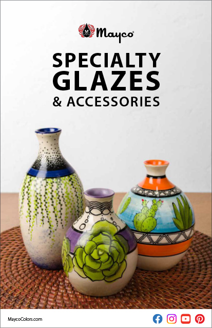 Founded in 1951, Mayco is one of the world's leading producers of quality ceramic products for artists, hobbyists, schools, manufacturers and others who work in ceramics. Mayco has long been known as a quality source of glazes and other fired finishes, with more than 600 different glaze colors in a wide variety of surfaces and textures. ** New products! Please call for availability.