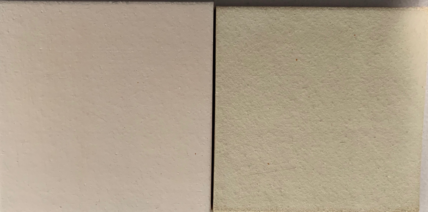 Left side bisque only, right side has clear glaze applied.