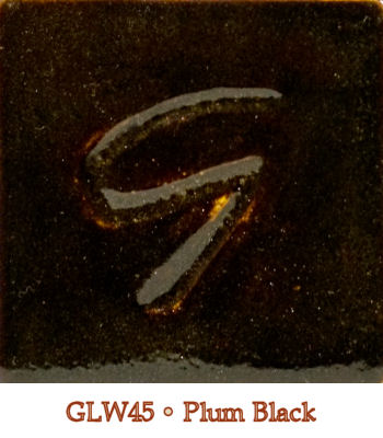 Rich, glossy black with deep purple and brown tones. Plays well with other glazes: try it under White Cloud (PG641) or Ohata Red (GLW34). Food-safe.