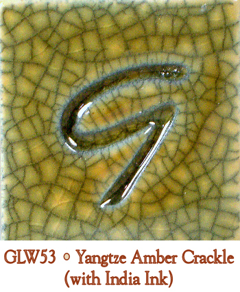 India ink will highlight the crackle patterns in the fired glaze. India ink, however, SHOULD ONLY BE USED WHEN THE CLAY BENEATH THE GLAZE IS VITREOUS (fused and waterproof as a result of firing). If the clay is not vitreous, the India ink will soak into the clay body and spread, with less-than-desirable results. If the ink soaks in, there is no cure other than refiring the piece to burn out the ink.